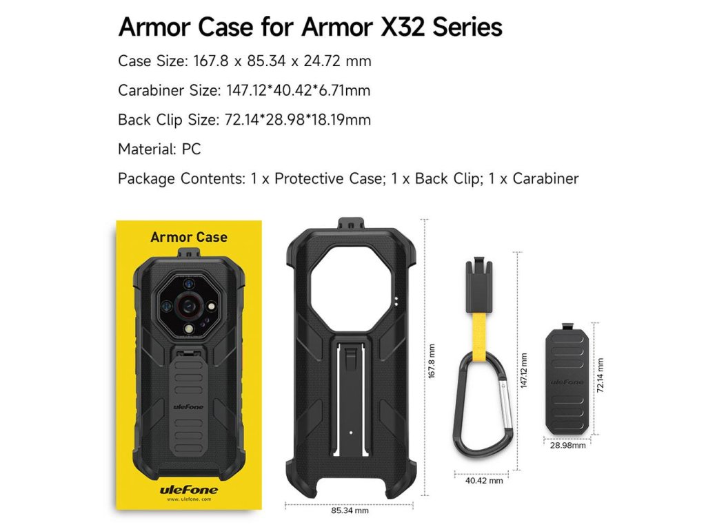 Originální obal s polykarbonátovou výstuhou na zadní straně pro Ulefone Armor X32 PRO. Vysoce odolný obal, který zvyšuje odolnost Ulefone Armor X32 PRO a také chrání zadní fotoaparát. Kryt obsahuje také praktickou přesku a karabinu.
